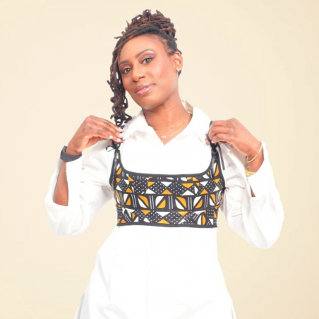 Le corset Libaya est une pièce unique qui allie modernité et élégance africaine. Confectionné dans un magnifique tissu wax, ce corset met en valeur votre silhouette grâce à une coupe structurée et ajustée. Ce corset est réversible, habillez-vous au gré de vos envies. La face réversible est cousu dans un somptueux satin de coton noir uni.